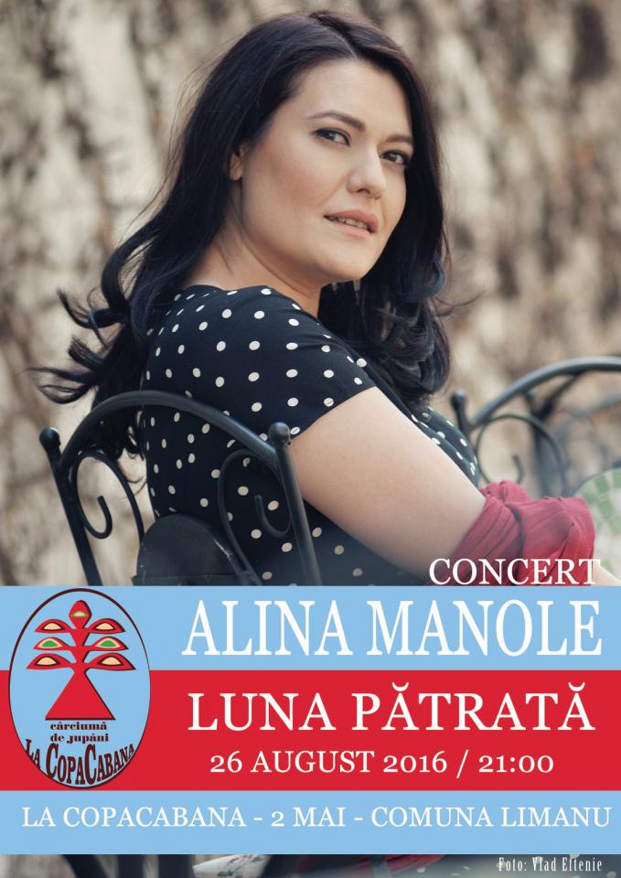 Jupâneasa-păcătoasă Alina Manole are cea-mai-cea Lună dintre toate: Luna Pătrată. Uneori se plimbă cu ea pe stradă (așa spune cântecul), iar alteori o ia cu ea la mal de mare, să o pună pe cel mai frumos cer dintre toate: cerul cu stele din 2 Mai. Oprirea oficială e la noi, La CopaCabana, vineri, 26 august, pe la ora 21:00. Nu vine singură, ci cu încă doi păcătoși de viță nobilă muzicală, Mugurel Coman și Claudiu Purcărin, căci au de împărțit cu toți cei care vin la noi nu doar bucățele de Lună ci și pitici, povești și vorbe de duh despre iubirile cele mari.