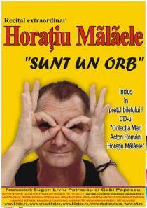 "Sunt un orb",spectacol de teatru one man show, recital extraordinar Horatiu Malaele,la Centrul Cultural Reduta.Artistul priveste intr-o maniera proprie opera unor mari poeti romani:Marin Sorescu,George Toparceanu,Nichita Stanescu,Emil Brumaru,Grigore Vieru,Adrian Paunescu si altii.Alaturi de poezie,veti regasi umorul lui Malaele presarat cu muzica,teatru si multa,multa improvizatie.Informatii si rezervari la nr. de tel.:0752.791.902.