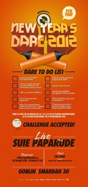 Sâmbătă, 31 decembrie 2011, în Club Goblin din Bucureşti petrecerea dintre ani va fi una cu totul şi cu totul altfel. Invitaţii speciali ai serii vor fi membrii trupei Şuie Paparude.
