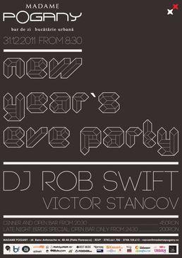 DJ ROB SWIFT promite un mix eclectic de Funk, Hip Hop & Breaks, care sa te tina pe ringul de dans la trecere in Noul An! Set-ul sau va fi completat de Victor Stancov, dj-ul rezident Madame Pogany.