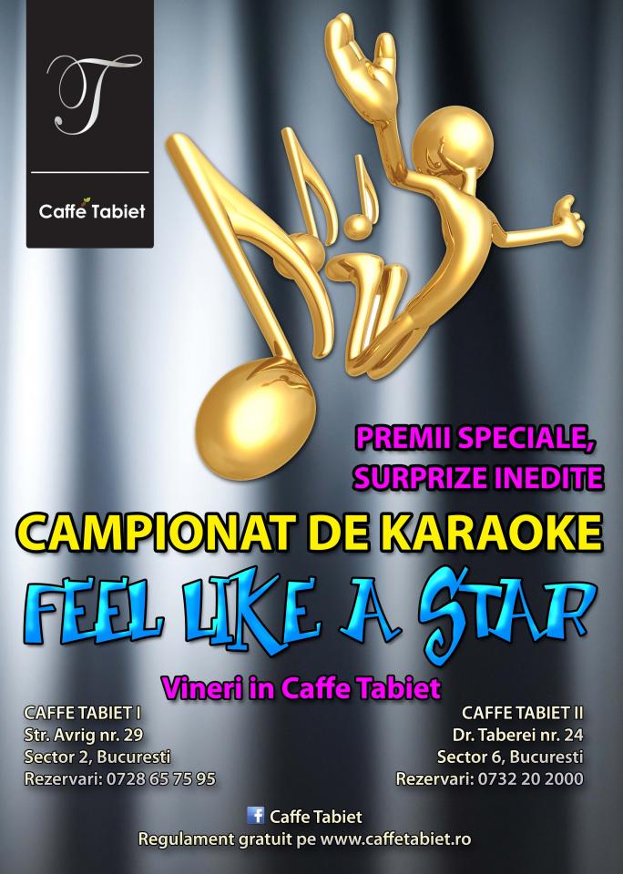 Pentru priceputi si ... nepriceputi :-), anuntam sus si tare ca VINERI, 30 septembrie, la Caffe Tabiet incepe CAMPIONATUL DE KARAOKE "Feel like a star"!