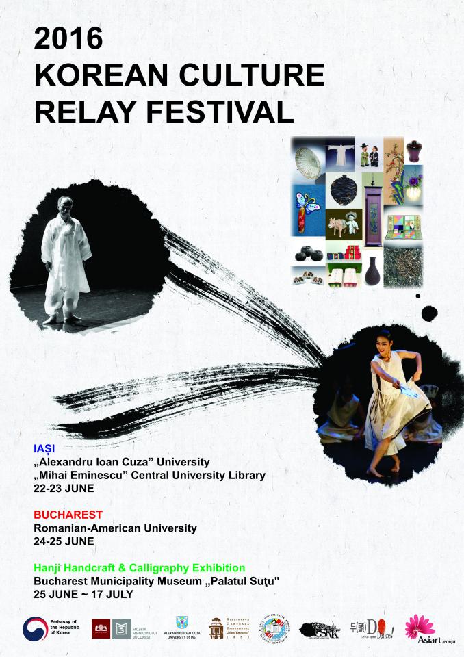 Ambasada Republicii Coreea (Coreea de Sud) la București va găzdui în acest an cea de-a treia ediție a Festivalului-Maraton al Culturii Coreene. Festivalul va avea loc la Iași între 22 și 23 iunie, într-o primă etapă, continuând apoi la București între 24 iunie-17 iulie. Evenimentul este organizat cu sprijinul Universității „Alexandru Ioan Cuza” din Iași, Bibliotecii Centrale Universitare „Mihai Eminescu” din Iași, Muzeului Municipiului București-Palatul Suțu și Universității Româno-Americane (URA) din București.