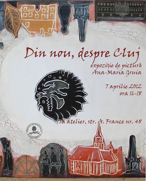 Sâmbătă, 7 aprilie, între 16 şi 18, în cadrul Garage Art Sale no. 7, are loc vernisajul şi întreaga expoziţie de pictură Ana-Maria Gruia intitulată "Din nou, despre Cluj". Nu rataţi o expoziţie blitzkrieg la atelier, pe str. Anatole France nr. 48!