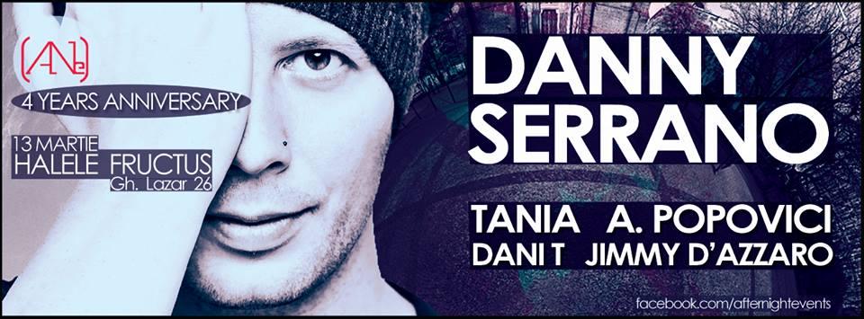 Vineri, 13 martie, DANNY SERRANO vine pentru prima data in Romania! Aniversam 4 ani de AfterNigHt events [ANe]], la Halele Fructus, incepand cu orele 23:00.